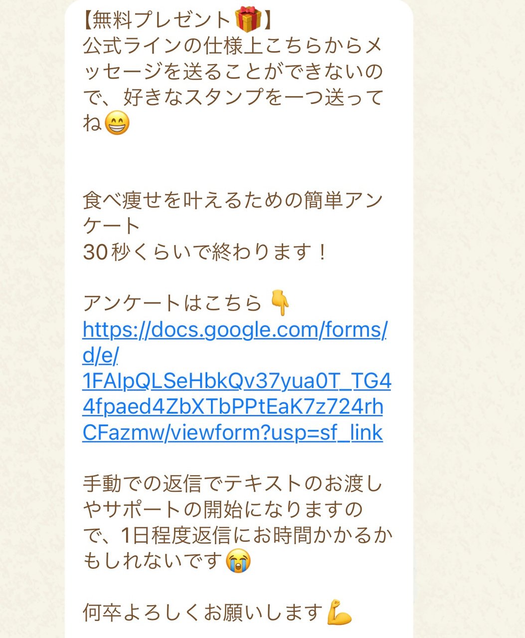 ※僕個人のダイエットサポートは有料ですが、こちらのテキスト受け取りは無料です!